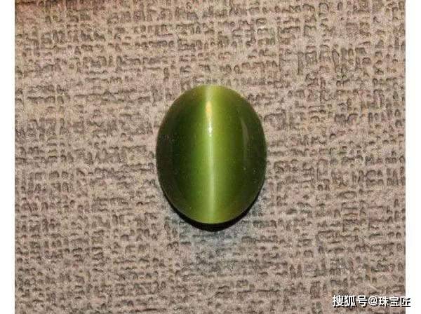 四川的软玉猫眼,是由纤维状的透闪石组成,此外还含有少量的磁铁矿和蛇纹石等,质地温润细腻,呈玻璃光泽,猫眼鲜活。