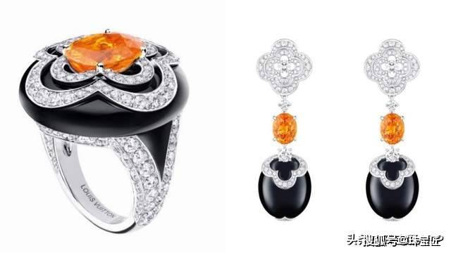 Blossom 锰铝榴石缟玛瑙白金套饰,by Louis Vuitton