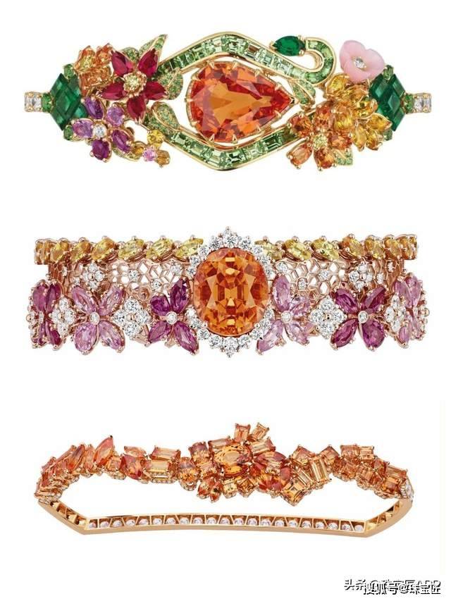 翠榴石、芬达石榴石和黄金的撞色热烈中带有异域风情。