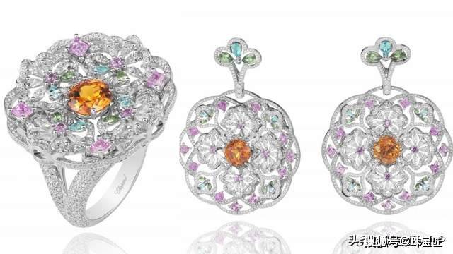 Silk Road 锰铝榴石白金套饰,by Chopard