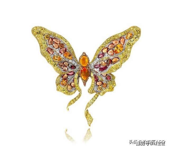 蝴蝶造型胸针,by Anna Hu 镶嵌石榴石、黄钻、钻石