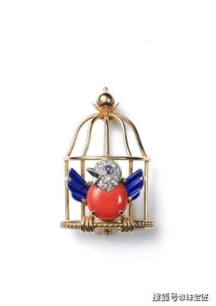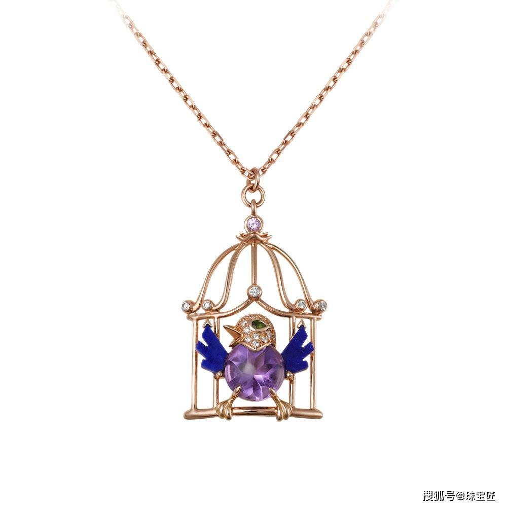 上面的紫水晶小鸟吊坠,设计源自Cartier1944年的“自由鸟”胸针。