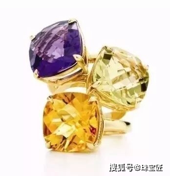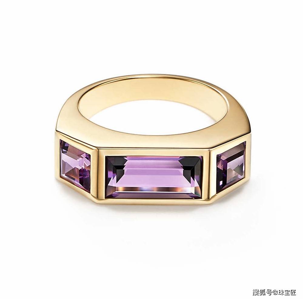 Tiffany的这枚紫水晶戒指,三颗长方形紫水晶包镶的戒指款式不同于普通排戒,圆润中带有棱角,简约而时尚。