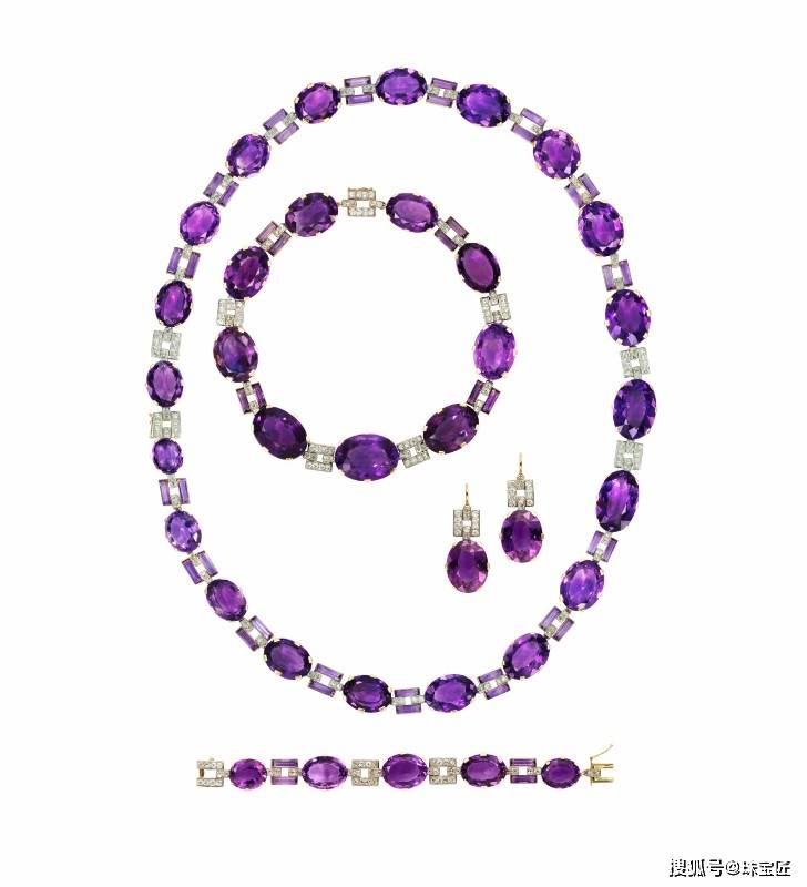 紫水晶项链、手链、耳坠,by Cartier,1926年