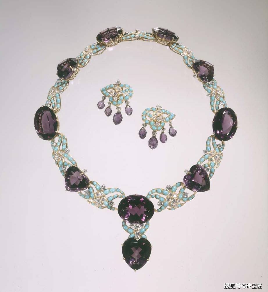 温莎公爵曾在1947年委托卡地亚Cartier 订制过一条紫水晶绿松石项链。