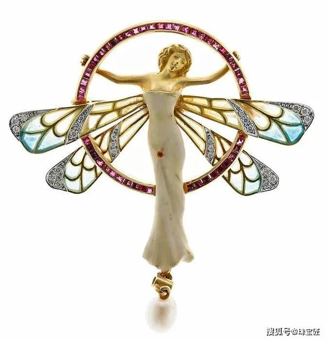 珐琅工艺是新艺术珠宝的特点之一,这种工艺极为适合制作轻薄半透明的昆虫翅膀。