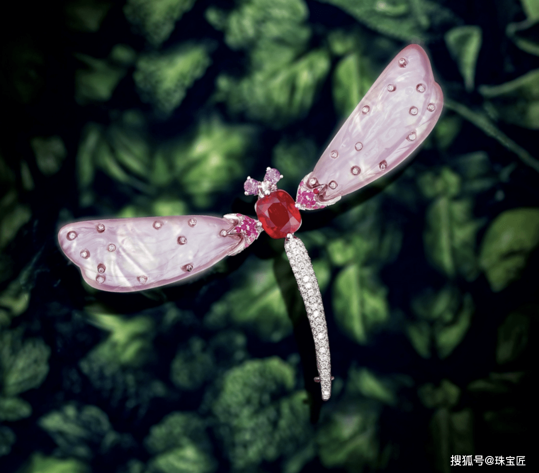 刘江霞设计 祖母绿,红宝及钻石「蜻蜓」胸针 | 图源:保利拍卖
