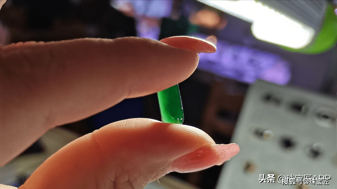 此外高品质的绿灰石质墨翠不仅打光后通透,还质地细腻,透射光呈蓝绿色,是绿辉石墨翠的典型特征之一。