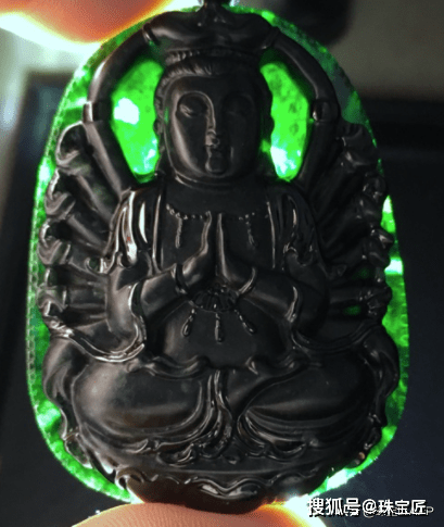 这类通常是翡翠市场上的低端货,许多百十元的“墨翠”男士翡翠佛牌就是这种翡翠批量机雕做的。