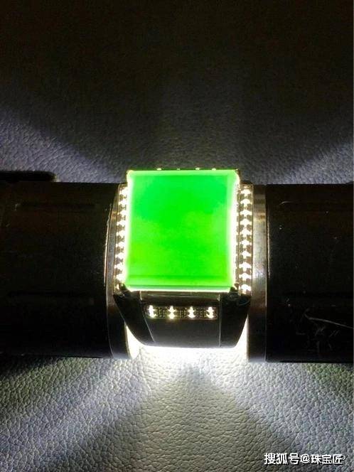 高品质的墨翠在普通光线下颜色乌黑,但在透光条件下,会呈现一种结构细腻通透的浓郁绿色(通常带蓝调),算是一种非常低调且高级的华丽。