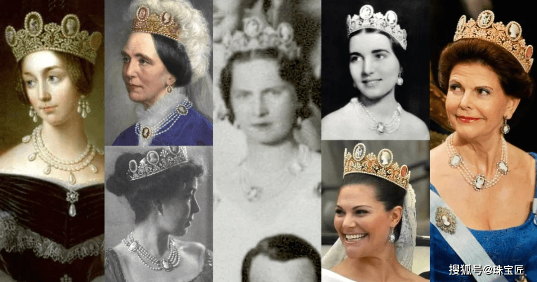 1823年,约瑟菲娜与挪威和瑞典的国王奥斯卡一世结婚,这顶珍珠浮雕冠冕也被带到了瑞典,成为了瑞典13顶王冠中的一顶,在瑞典王室内代代相传。