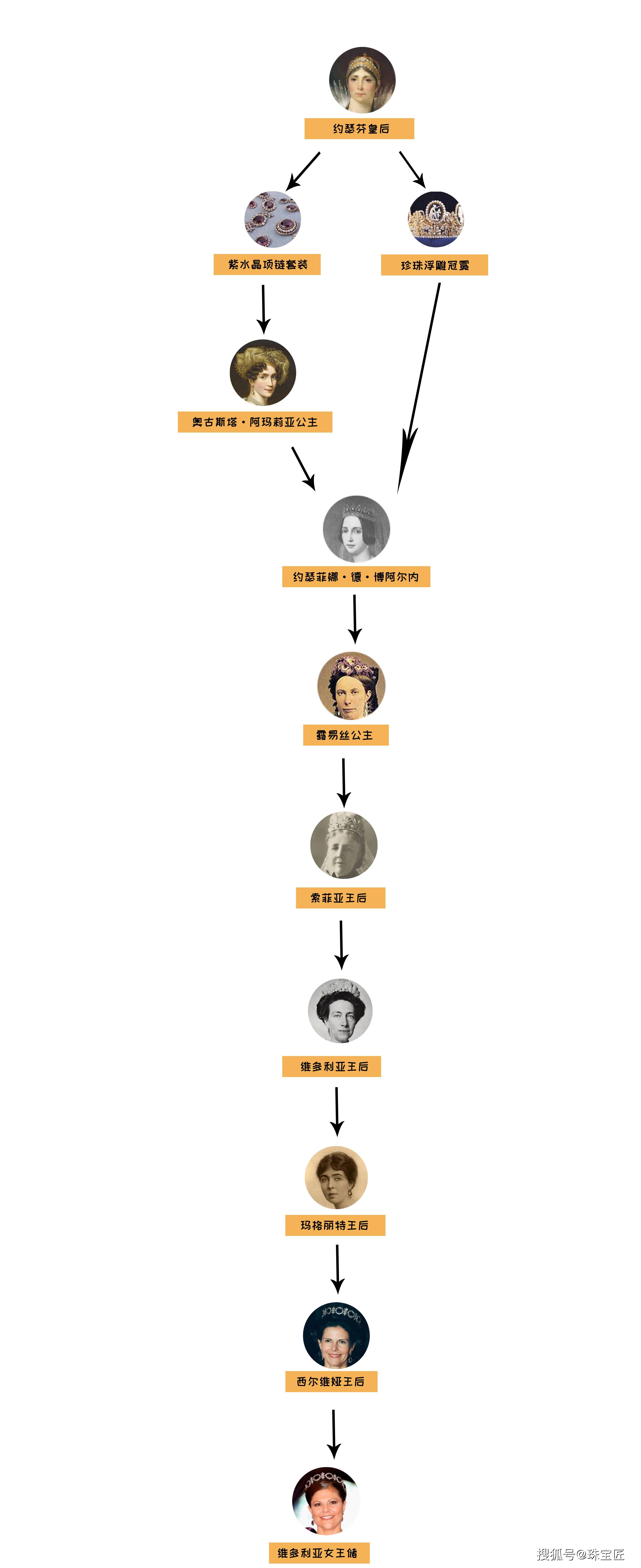 后来,约瑟芬皇后将这顶十分珍贵的冠冕传给了自己的孙女:约瑟菲娜·德·博阿尔内。