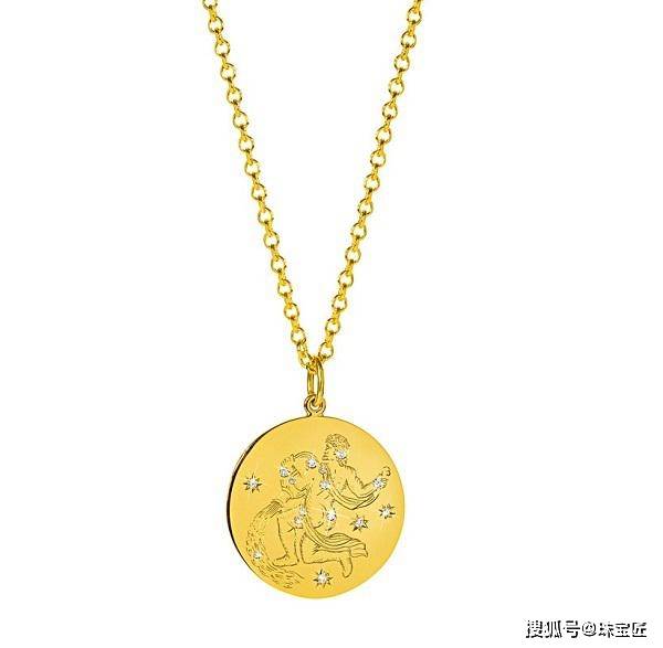 金质的牌子上雕刻了水瓶座的图腾,点缀的钻石散发出闪闪星光。