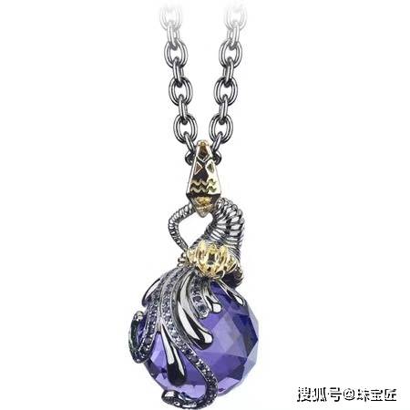 紫色的球体水晶为主体,并用黑色镀铑镶嵌成水瓶座造型,一股神秘的气息铺面而来。