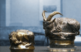 除了这枚罗马贵妇胡椒瓶,在霍克森窖藏中还出土了2枚动物造型的胡椒瓶,一个为山羊造型,另一个为猎犬捕兔造型,工艺精湛,造型生动。
