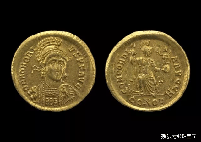 霍诺留于397—402年发行的金币,出自霍克森窖藏