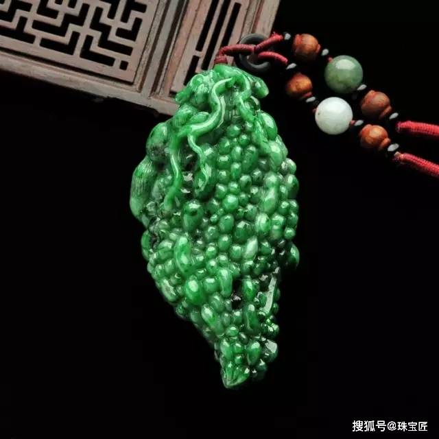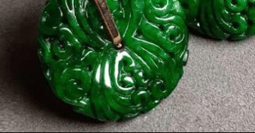 虽然干青翡翠的绿色很浓艳,但是架不住它水头差看起发闷,且多黑点或者矿物点,粒状结构颗粒较粗。所以能做成大件且完美无瑕的很少,大部分都会拿镂空雕刻、通体雕琢花纹纹样,甚至切成玉片镂空。