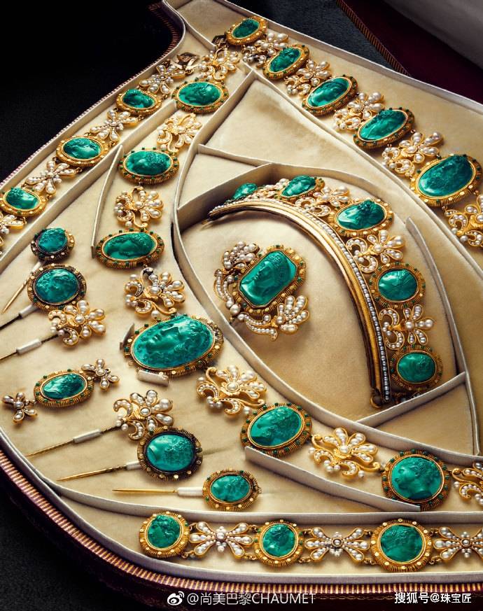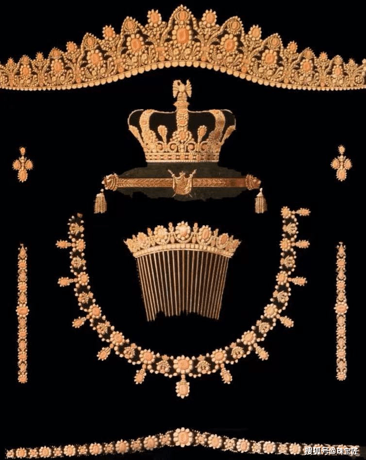 酷爱用珠宝表达爱意的拿破仑,又向朗索瓦-勒尼奥·尼铎为新皇后玛丽·路易丝定制了一系列的珠宝。