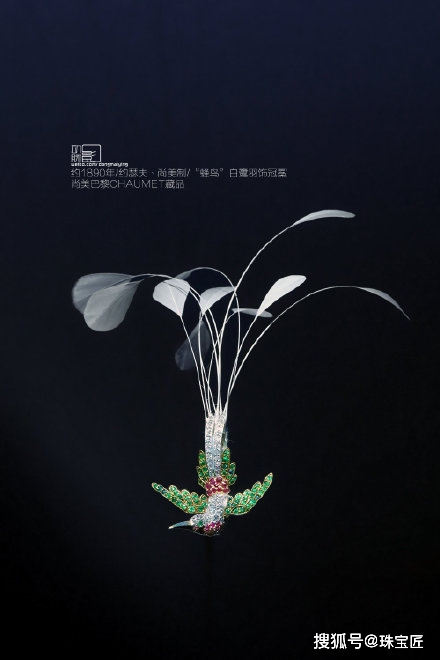 蜂鸟,体态娇小,行动敏捷。这顶冠冕以金、银、宝石打造出蜂鸟的外形,并用羽毛来还原灵巧轻盈之态,构思十分巧妙。