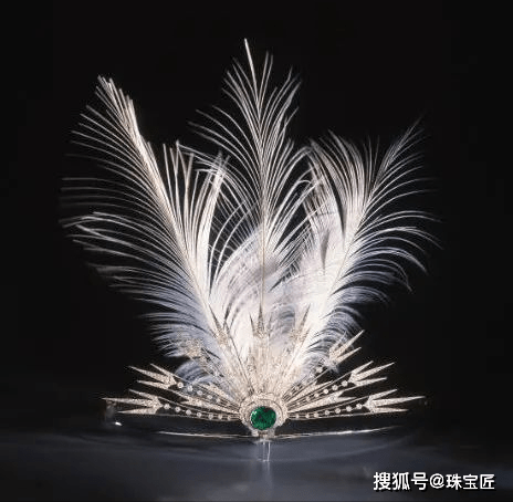 而这顶1914年制作完成的“旭日初升”白鹭羽饰冠冕,中间镶嵌祖母绿,并用钻石呈现出光芒四射的太阳,冠冕后面点缀的白鹭羽毛,成为了整件作品的点睛之笔。