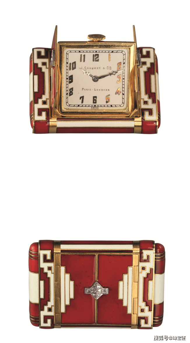 到了1925年,巴黎装饰艺术与现代工艺博览会上,这种装饰艺术风格更是发展到了顶峰。强烈的色彩对比,简约明了的几何线条、半宝石的运用成为CHAUMET设计的主旋律。