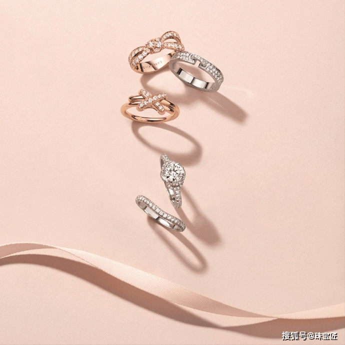 设计师们从18世纪法国洛可可艺术中汲取创作灵感,将蝴蝶结、花环、心形等元素融入其中,巧妙地运用镂空、镶嵌等工艺,使得珠宝呈现出一种细腻的美感。
