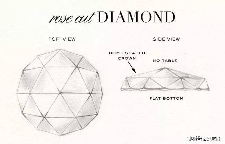 玫瑰式切割的最大特点就是无台面、无亭部、无底尖,这种独特的工艺成为了十七时期后半期最受欢迎的钻石切割方式,让钻石尽显璀璨闪耀的光芒。