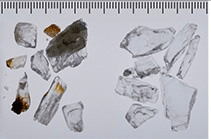 实验中使用了一组经过辐照过的无色方柱石原石和一组天然无色方柱石原石。