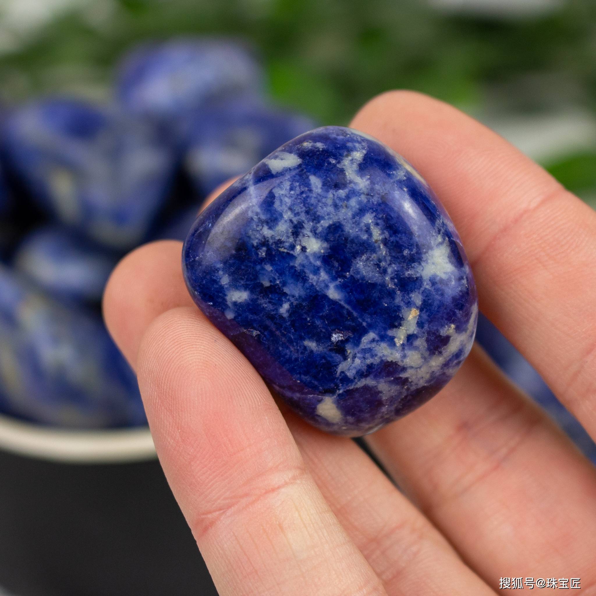 常见的方钠石的颜色通常为类似宝蓝色或者紫蓝色,带白色的纹理。