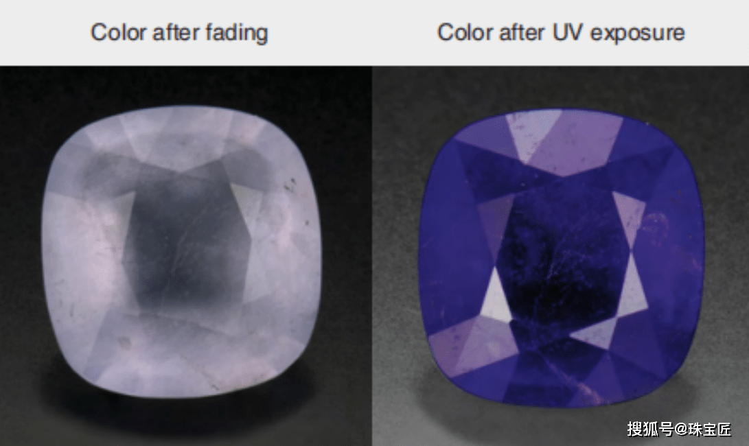 GIA美国宝石研究院曾报道过,一些阿富汗产地的无色方柱石在紫外光下会产生可逆的变色效应。