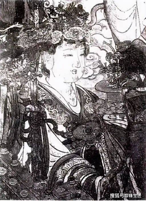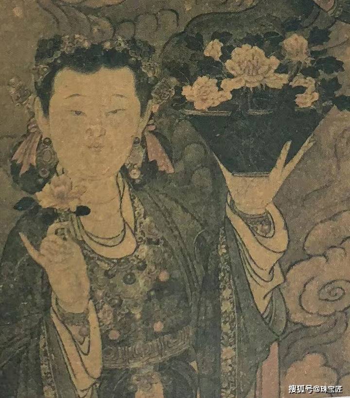 璎珞作为一种样式华丽的颈饰,深受王室贵族的喜爱,尤其是在宫廷中的舞女和侍女中,尤为常见。