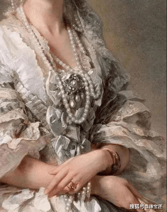 如果你仔细观察这一时期的人物绘画作品,就会发现,从发间到耳饰,再到服饰上,珍珠无处不在。