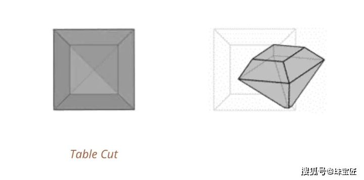 15世纪中叶,匠人们改进了中世纪时期非常流行的尖琢型切割,把凸起的一面切掉,形成了一个类似桌子的台面,第一个真正意义上的琢型:桌形切割出现。