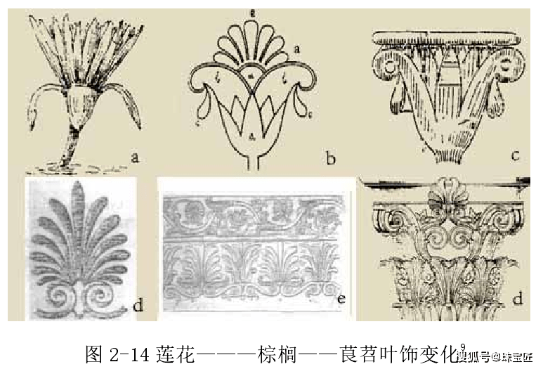枣椰纹和忍冬花瓣所组成的图案之变化形式,构成了类似心形的结构并带有扇形叶和双涡卷,这种由植物装饰变化形成的纹样可以被统一命名为心形涡卷纹样。