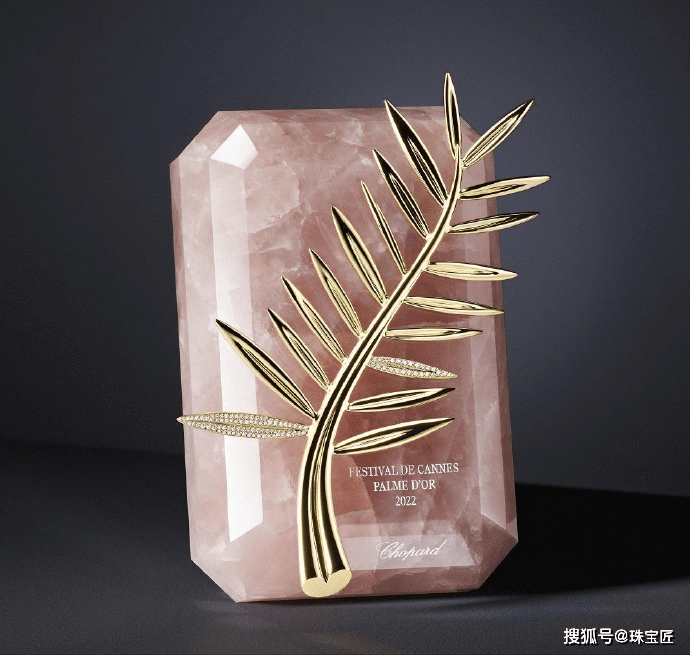 Chopard为第75届戛纳电影节金棕榈奖奖杯,设计灵感来自戛纳城徽棕榈叶,一颗浅粉色水晶托起修长的金棕榈枝。