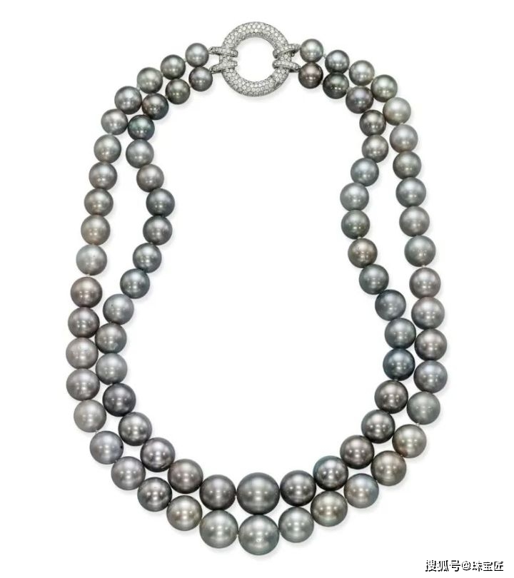 莉丽·萨夫拉夫人还曾收藏一条双层渐变灰色珍珠项链,圆润的珍珠看似朴实无华,但与钻石环搭配在一起,尽显典雅庄重。
