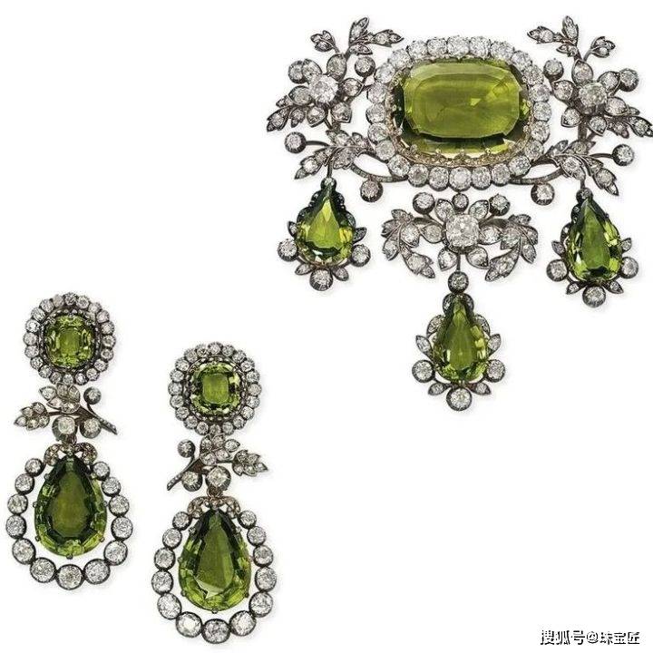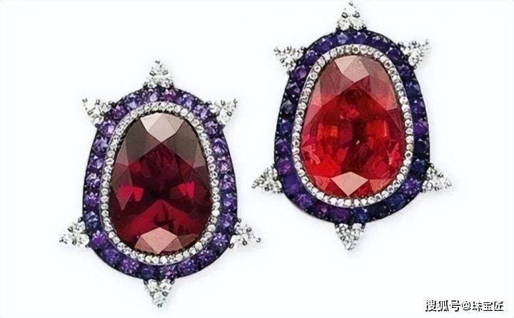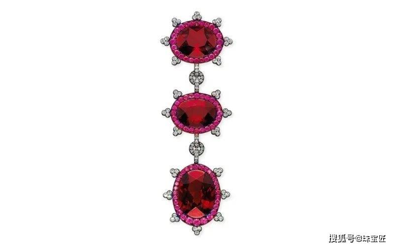 三颗重41.35、33.25、28.42克拉椭圆形石榴石镶嵌而成的胸针,虽然款式较为简约,但宝石足够大,壕气异常。