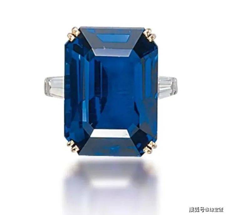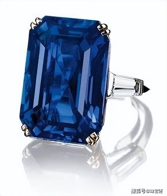 这枚戒指出自宝诗龙之手,主石重达31.21克拉,拥有绝美的净度和美丽浓郁的蓝色,戒指的款式看似简单,但宝石够大,足以撑得起任何场面。