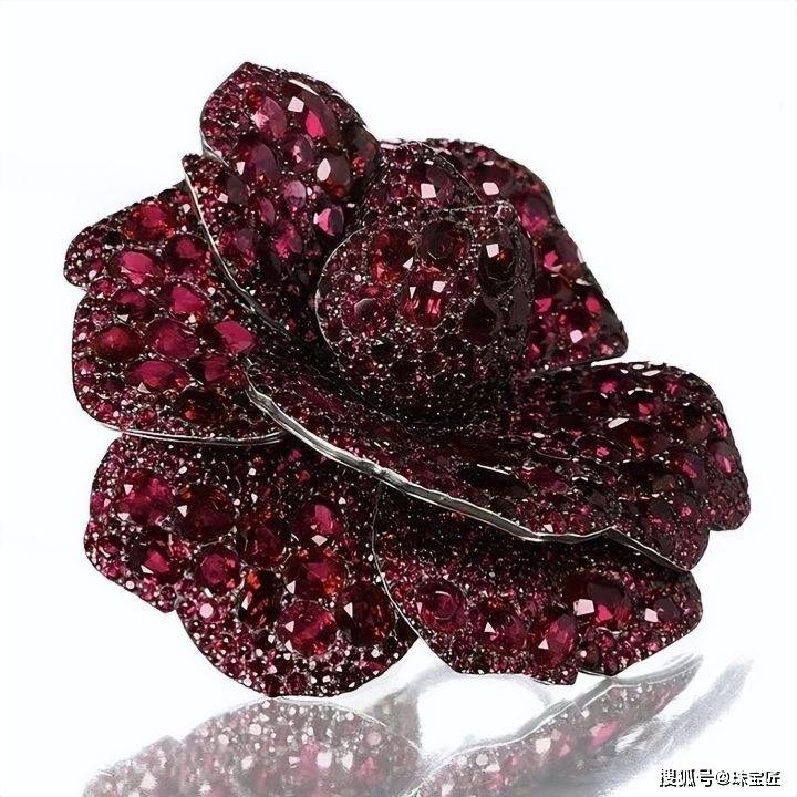 下面这枚山茶花红宝石钻石胸针,是美国著名设计大师JAR为莉丽·萨夫拉夫人独家定制的。