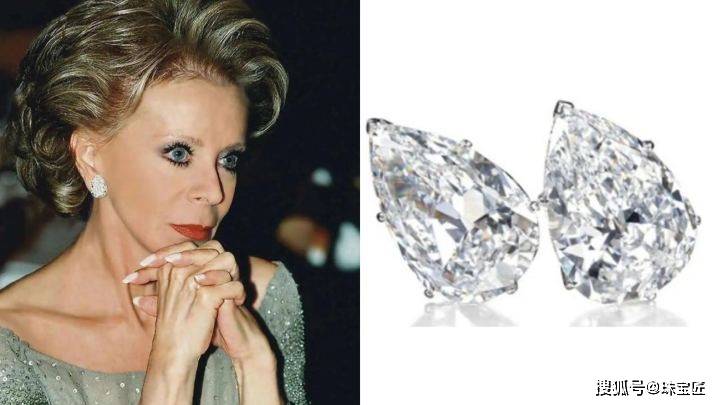 除此之外,莉丽·萨夫拉夫人还有一对重达9.43、19.16克拉的水滴形钻石耳环,钻石绚丽夺目,璀璨闪耀,是她最常佩戴的珠宝之一。