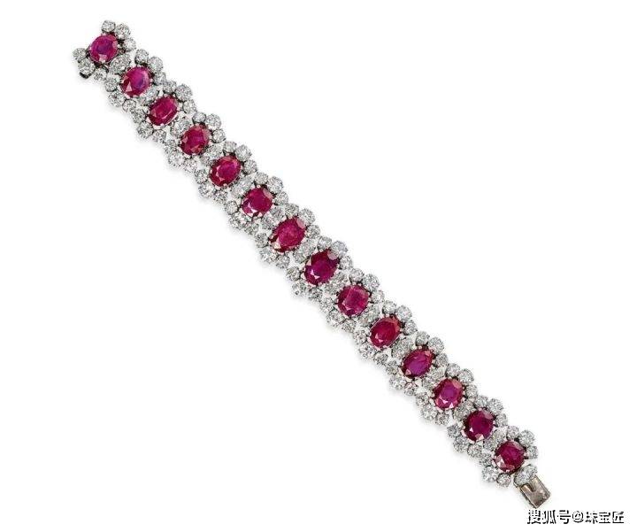 这条红宝石钻石手链,出自卡地亚,多层红宝石珠子缠绕在一起,与闪耀璀璨的钻石形成鲜明对比,造型华丽出挑,贵气十足。