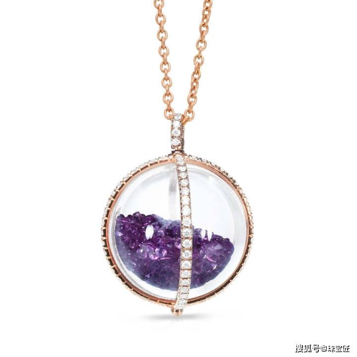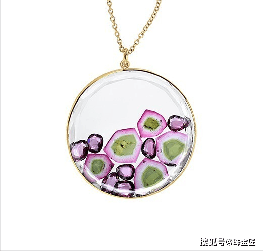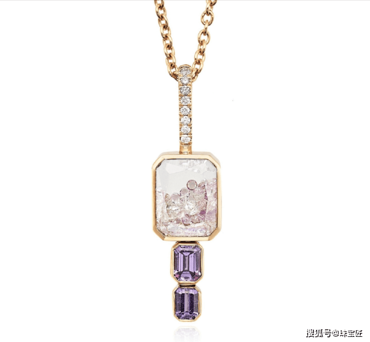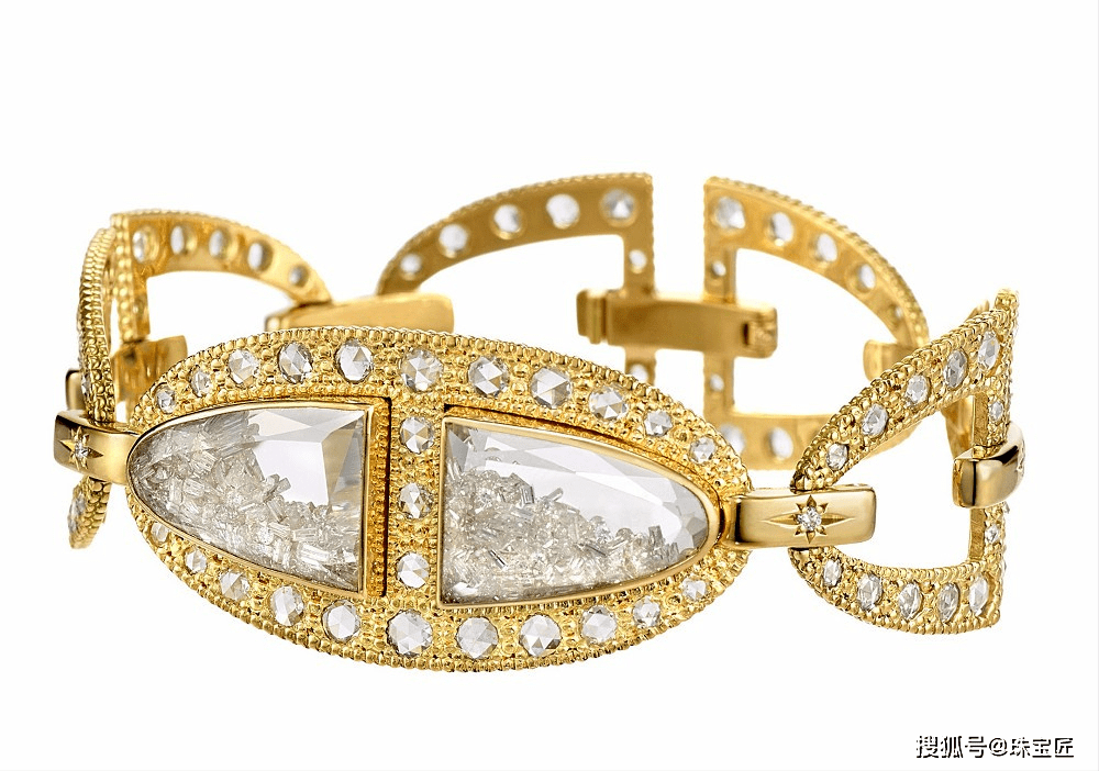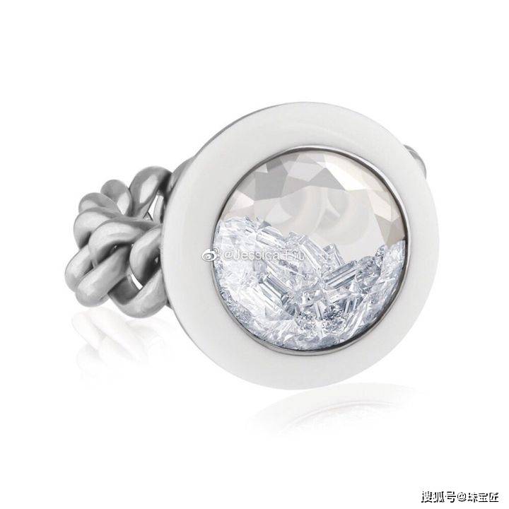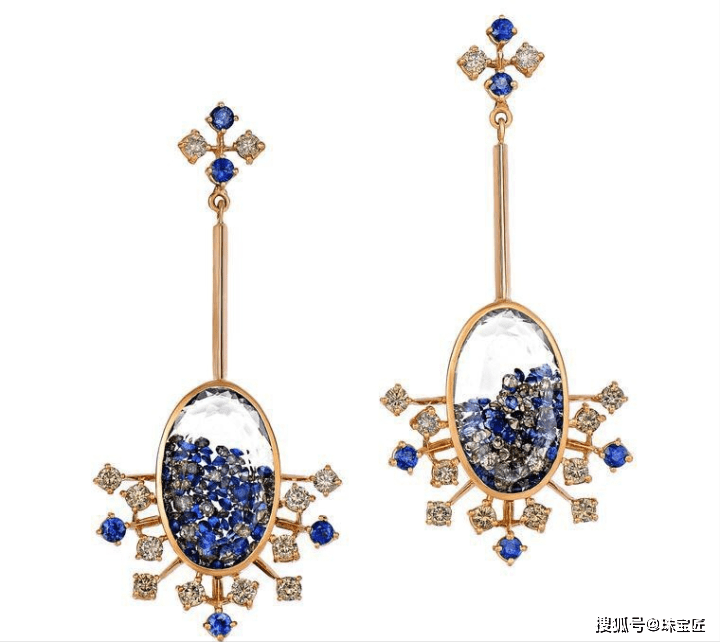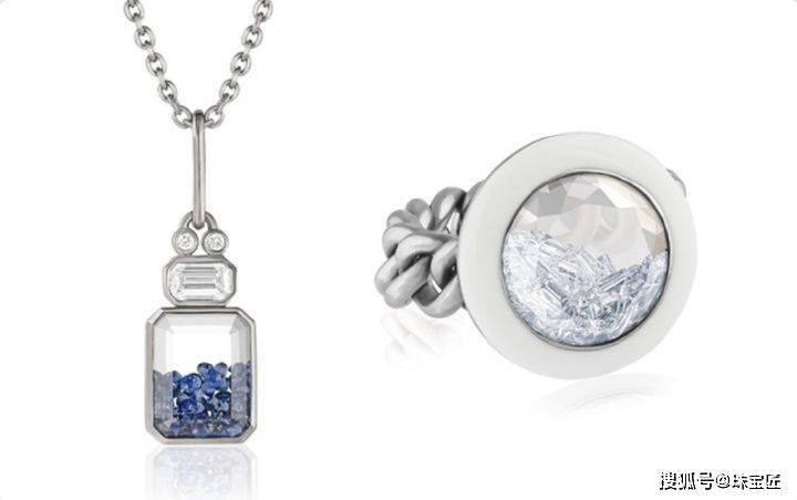 但简单地来说,就是用两片大小相同的无色蓝宝石打造出宝石匣,然后将采用不同切割的小颗粒宝石放置其中,匣内的宝石可随着佩戴者的动作而自由舞动,如同万花筒般绚丽斑斓。