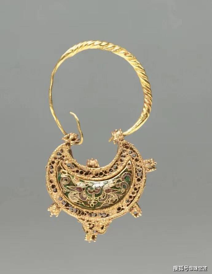 11世纪 黄金拉丝掐丝珐琅耳环 拜占庭时期 藏于克利夫兰艺术博物馆