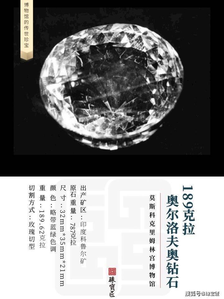 其中一枚重达189.62克拉、被镶嵌于俄国皇家权杖上的奥尔洛夫巨钻,更是凭借其独有的净度与色彩,在世界十大名钻中位列第七。