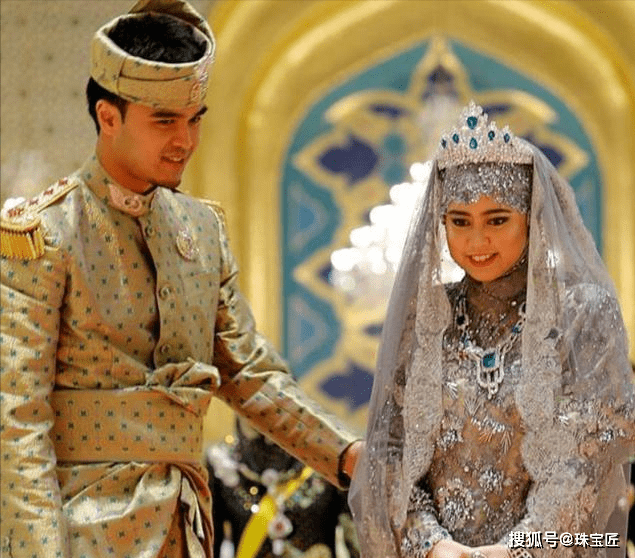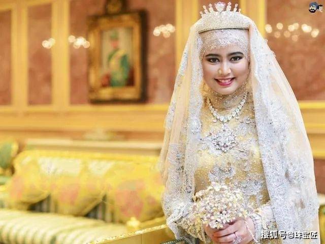 为了彰显出王室的尊贵,这场婚礼办得空前盛大、隆重。姿色欠佳的萨拉赫,更是从头到脚佩戴了近千万的珠宝首饰,气场强大,风光无限。