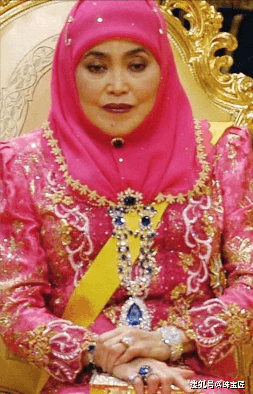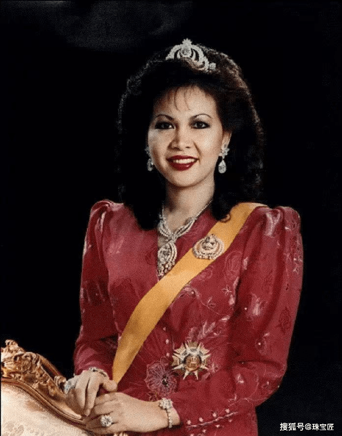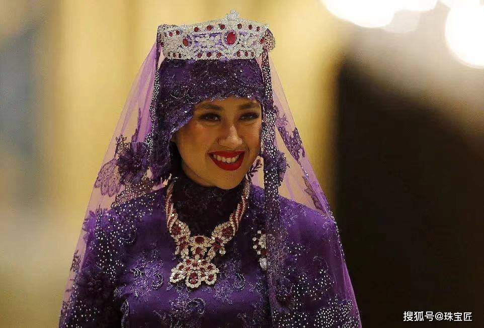 2004年9月9日,文莱王储穆赫塔迪·比拉大婚,萨拉赫将这顶奢华至极的红宝石冠冕借给了自己的儿媳妇萨拉·萨莱赫佩戴。