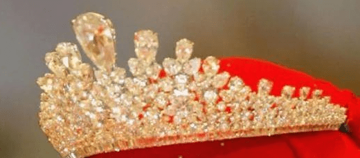 虽然都是三角形冠冕设计,这顶梨形钻石冠冕则少了一份张扬,多了一份内敛。