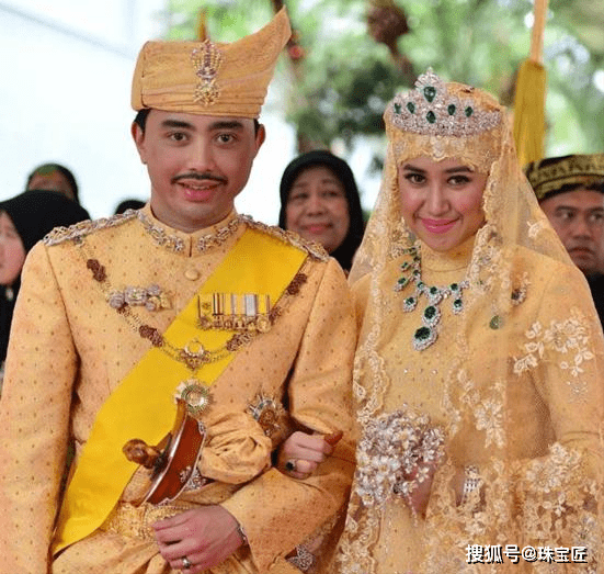 萨拉赫的女儿哈菲查公主在大婚时曾佩戴过它,并选用同样奢华的钻石项链、戒指、镶嵌钻石的服饰等等作为点缀,整个人珠光宝气,奢华异常。
