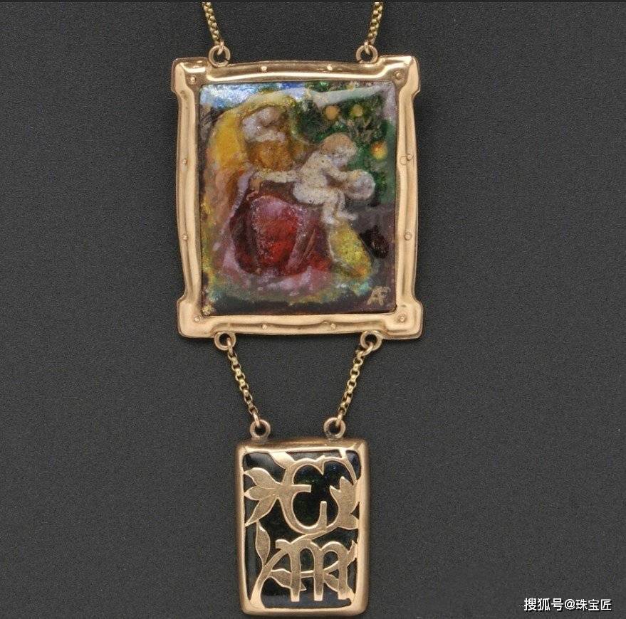 其中,亚历山大·费舍尔是工艺美术运动中最为顶级的珐琅大师之一,它常将多种珐琅工艺巧妙的融合在一件作品之上,从而呈现出一件件惊艳世人的绝世孤品,他的这种设计理念也影响了许多同时期的珠宝设计师。