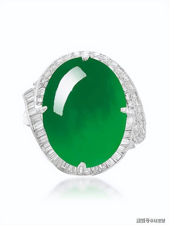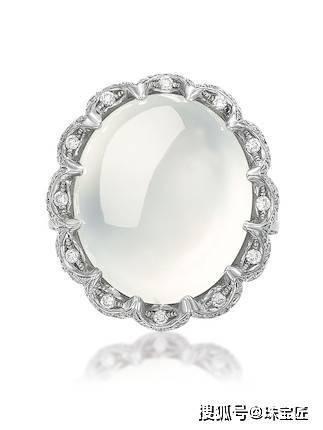 尺寸约为18.28 x 15.39 x 6.75mm毫米的翡翠;18k白金镶嵌;戒指尺寸5;